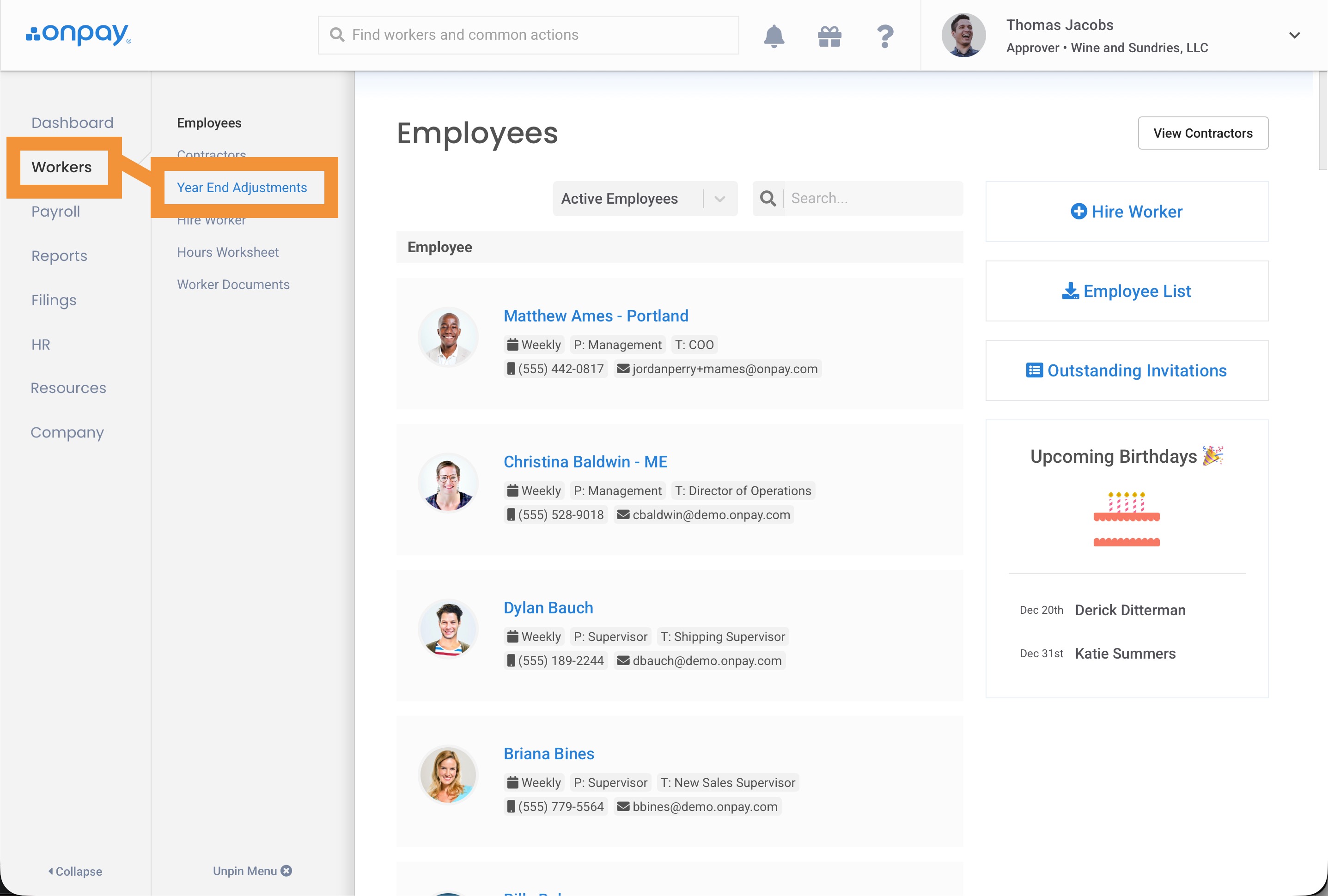 From your dashboard, click Workers, then Year End Adjustments.
