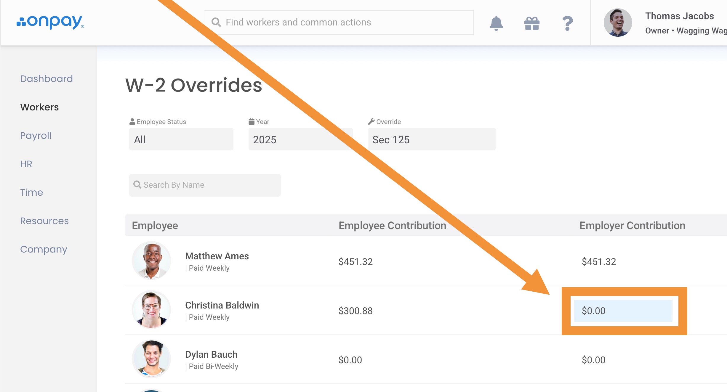Click on the incorrect amount in the "Employer Contribution" column to edit. Enter the correct amount in the field that appears, and click Save.