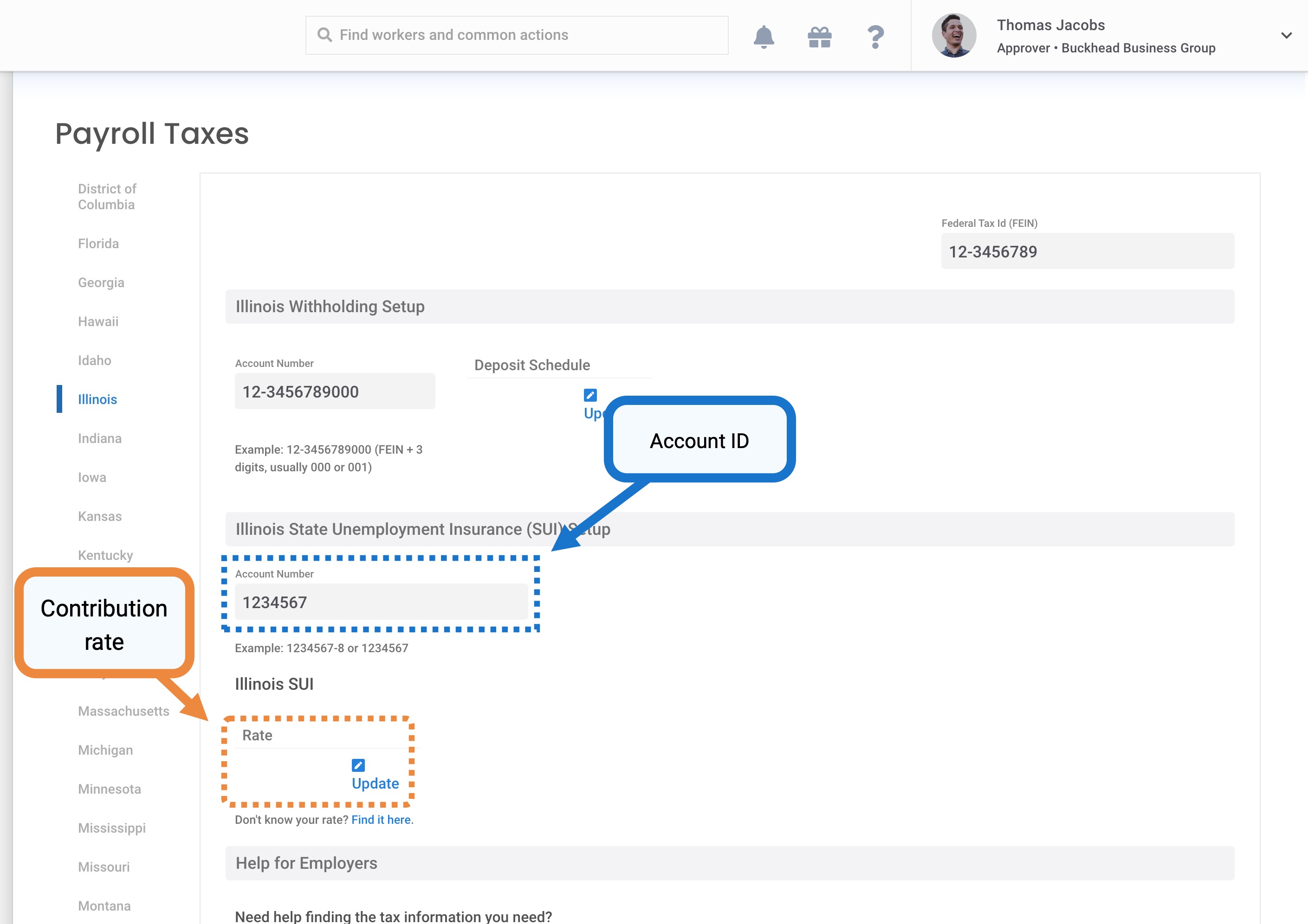 For OnPay to effectively calculate state tax contributions, you'll need to ensure the tax rates entered in OnPay are correct for each state where your company has a tax obligations. For example, if you operate in both Illinois and Indiana, you must keep payroll tax information up-to-date for each (and every) state where you pay employees.