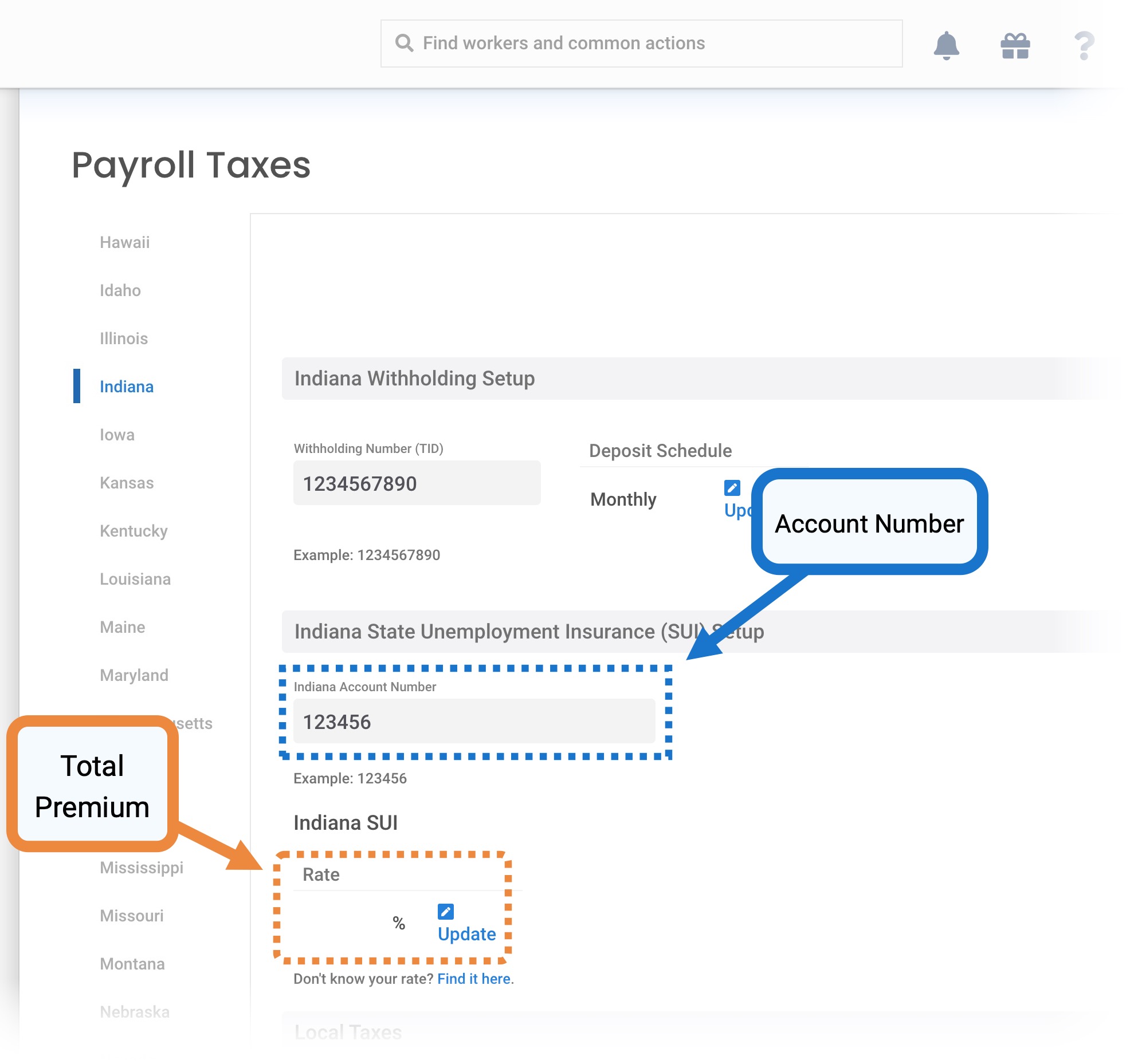 - Your Indiana SUI rate can be found in the box marked "Total Premium"