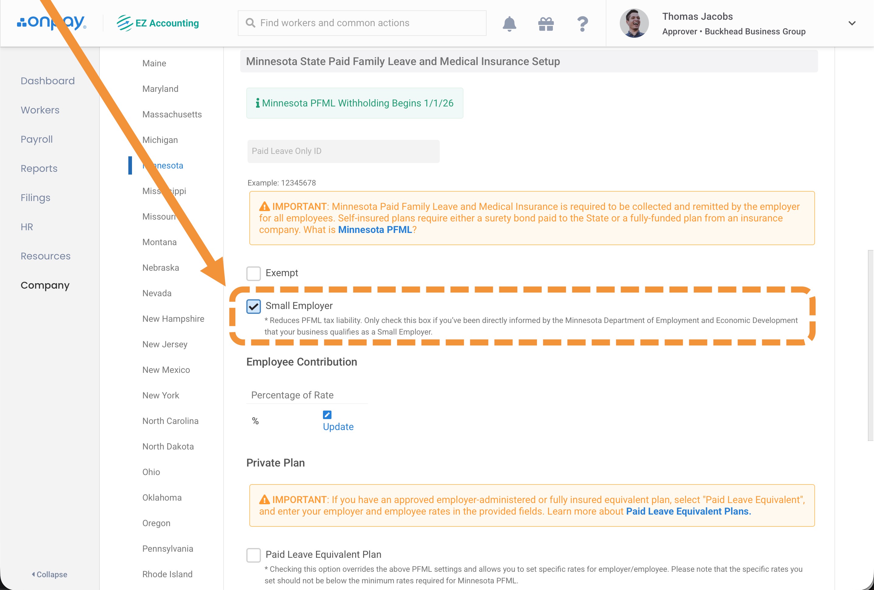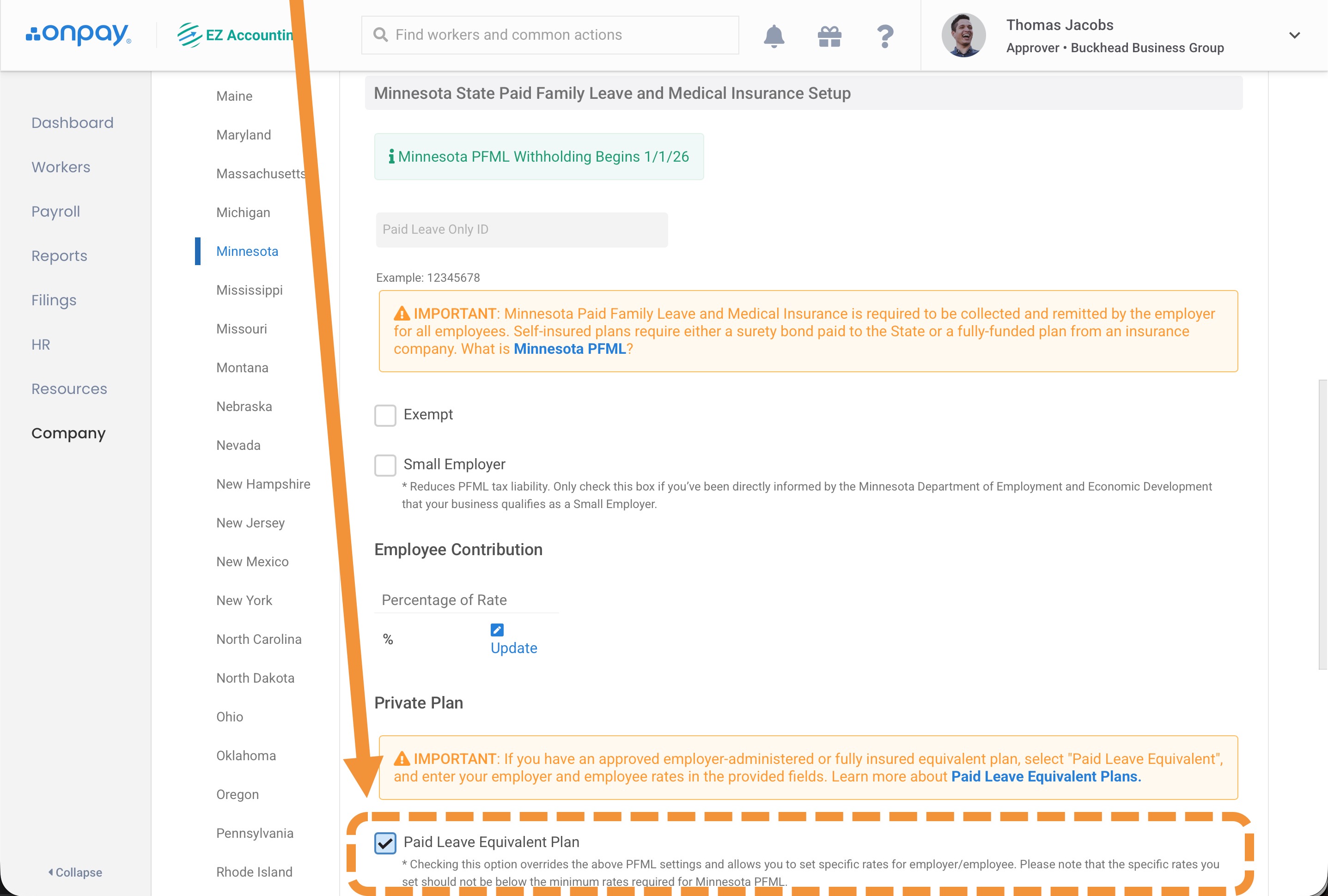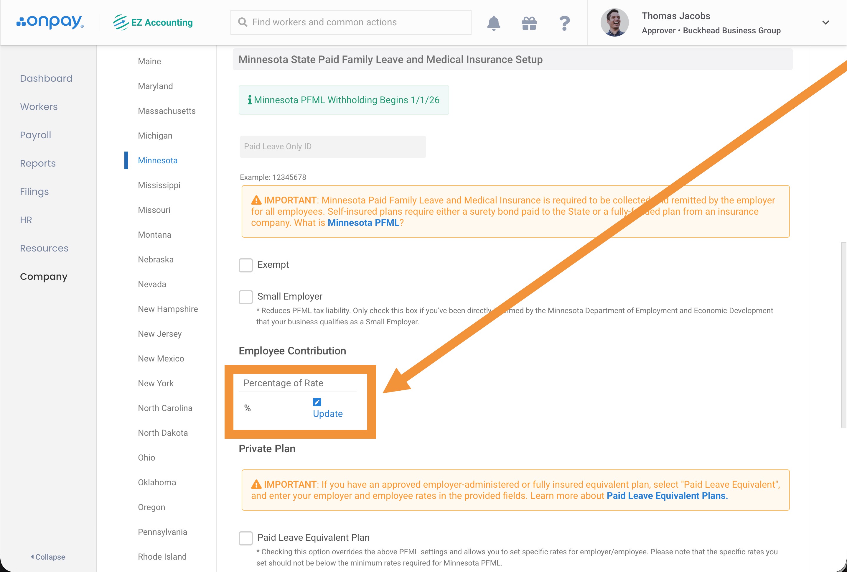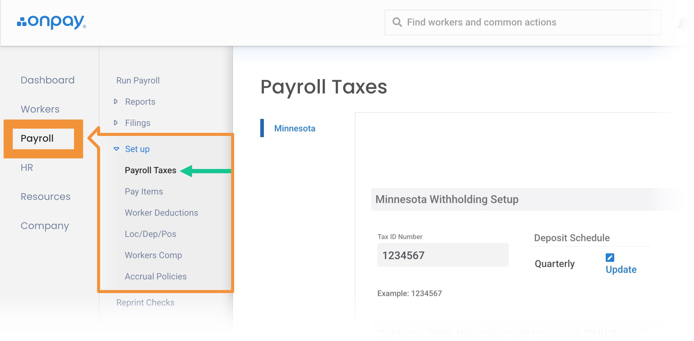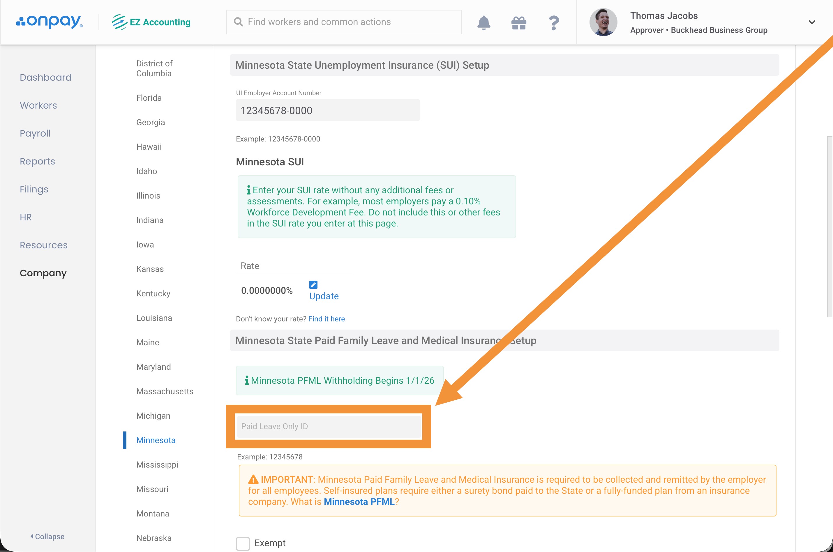 - You'll need to enter your Paid Leave Only UI Account Number in OnPay (↓see instructions below↓)