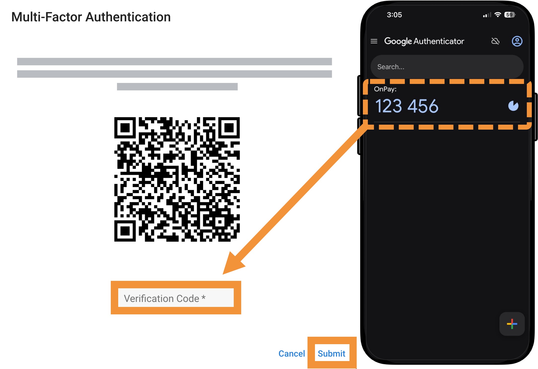 When logging into OnPay with MFA enabled, you're prompted to enter a second passcode. This 6-digit, one-time-use code is randomly generated on your smartphone, using a third party app called an authenticator. Once you've downloaded and set up an authenticator app, you can connect it to your OnPay account to generate a unique security code each time you log into your OnPay account.