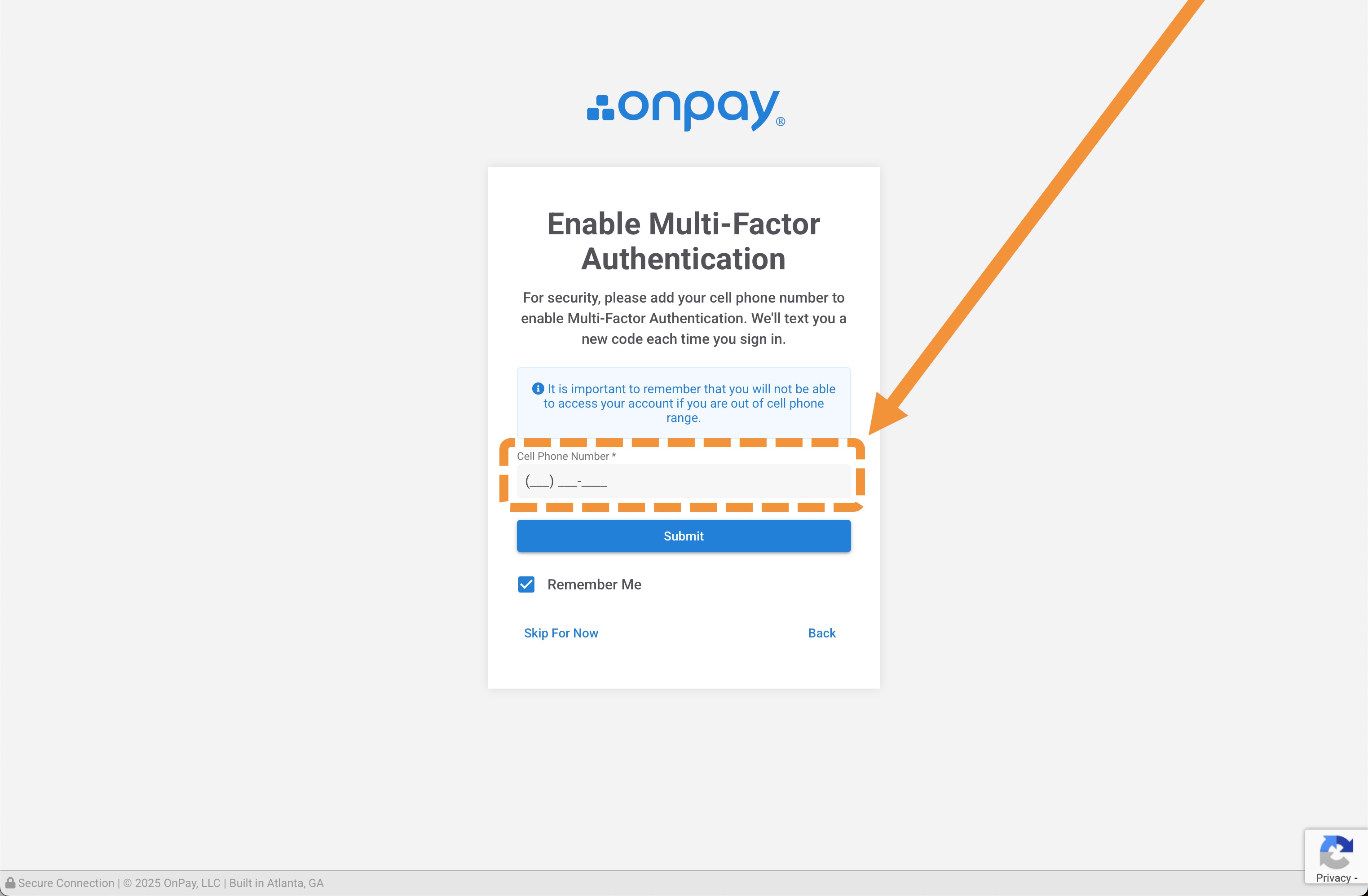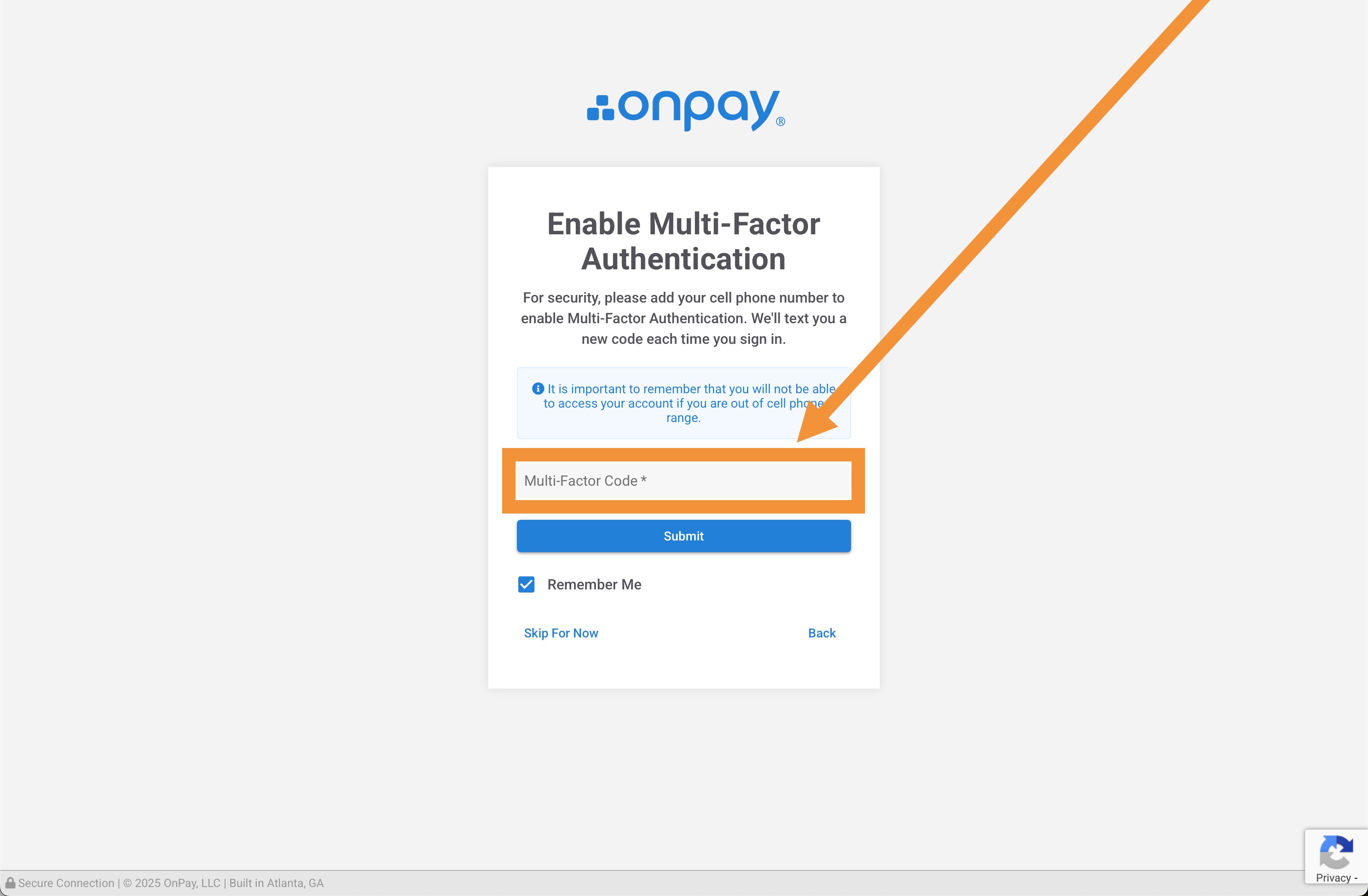You can enable multi-factor authentication at any time in your OnPay profile, and may have even set it up when you first started with OnPay. MFA is recommended, but not required. You can disable MFA at any time by logging into OnPay and editing your profile.