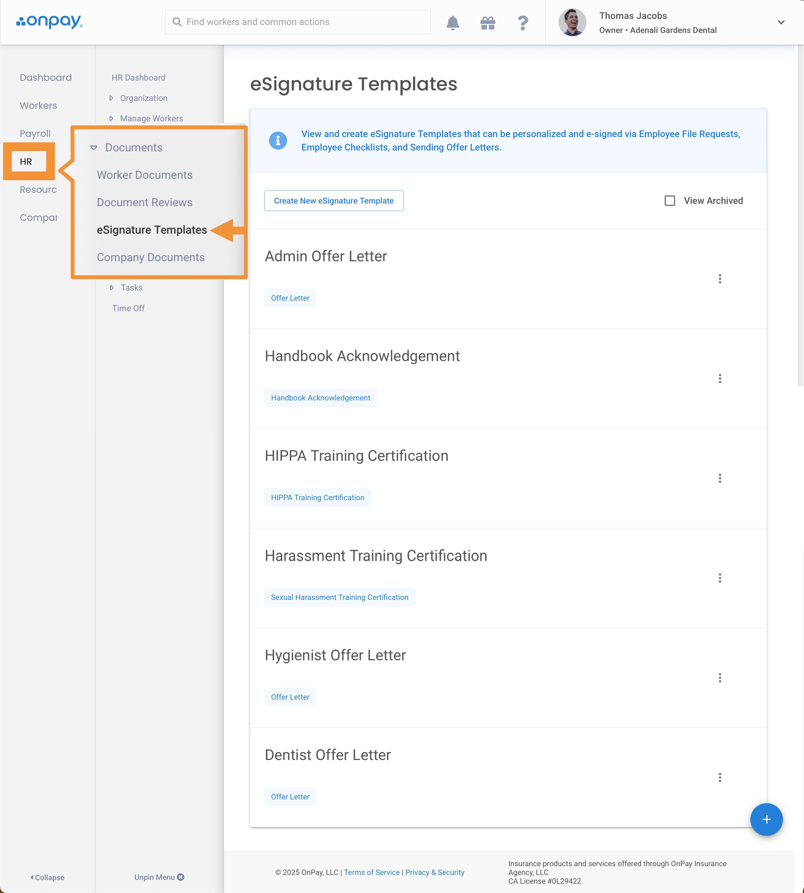 With your File Checklists set up and assigned, you're ready to go to Documents, then eSignature Templates, to make templates for offer letters and other documents you need signed.