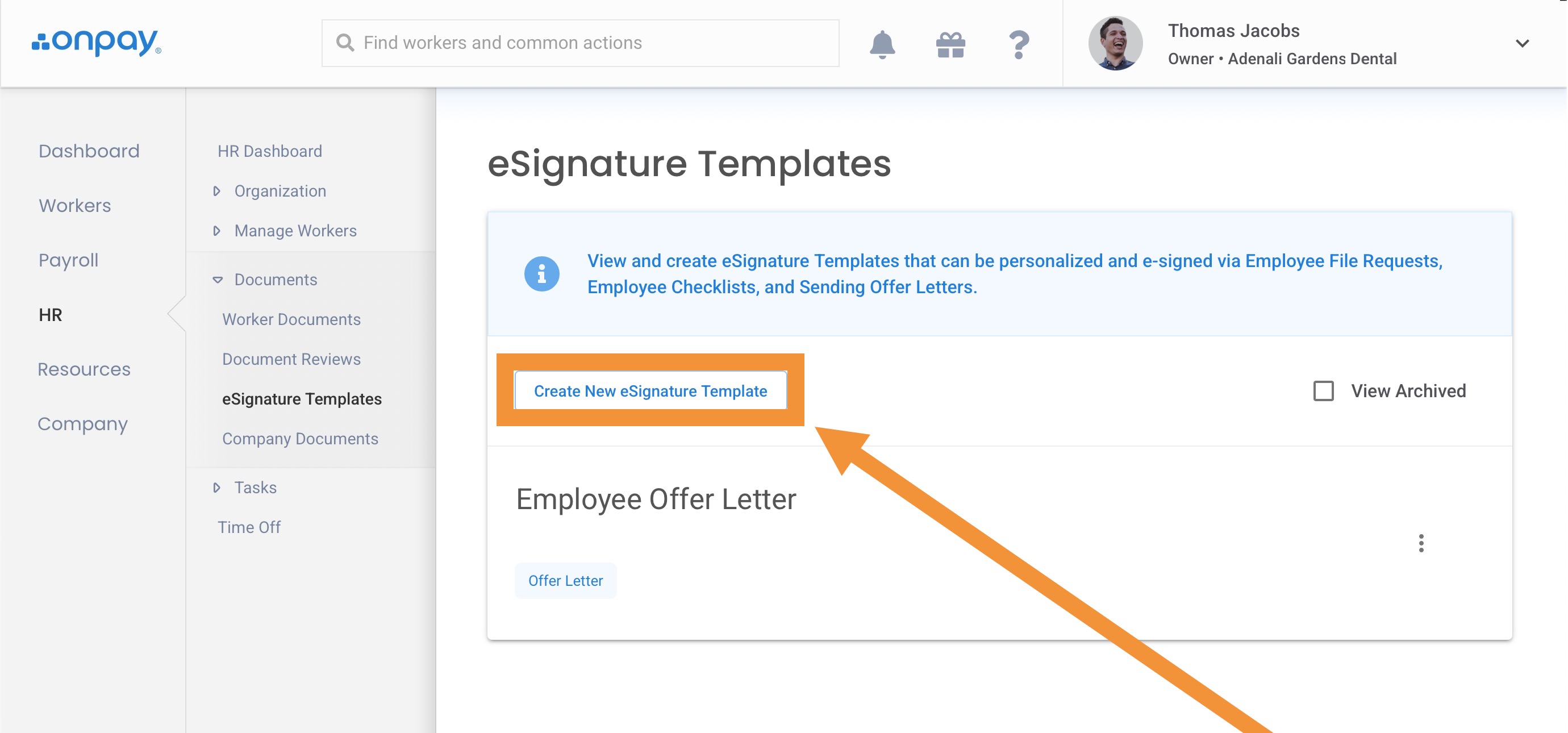 If you haven't already created an offer letter template, we'll start there, but this process can easily be applied to any type of document you regularly need to provide employees to fill out, sign, and return.
