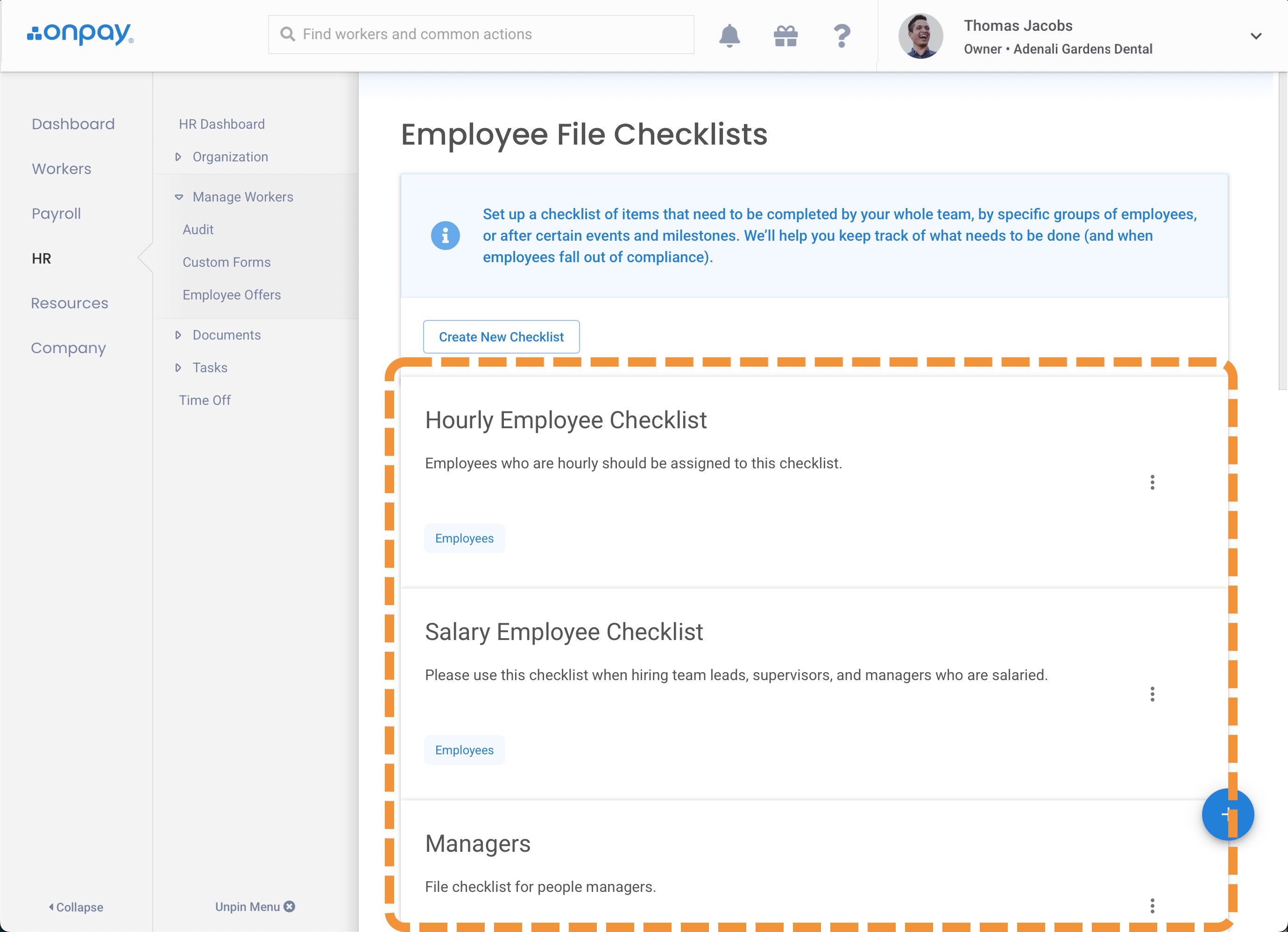 You can repeat this process to create as many checklists as you need for your various employee types. You can update the items in a File Checklist, and add or remove employees at any time.
