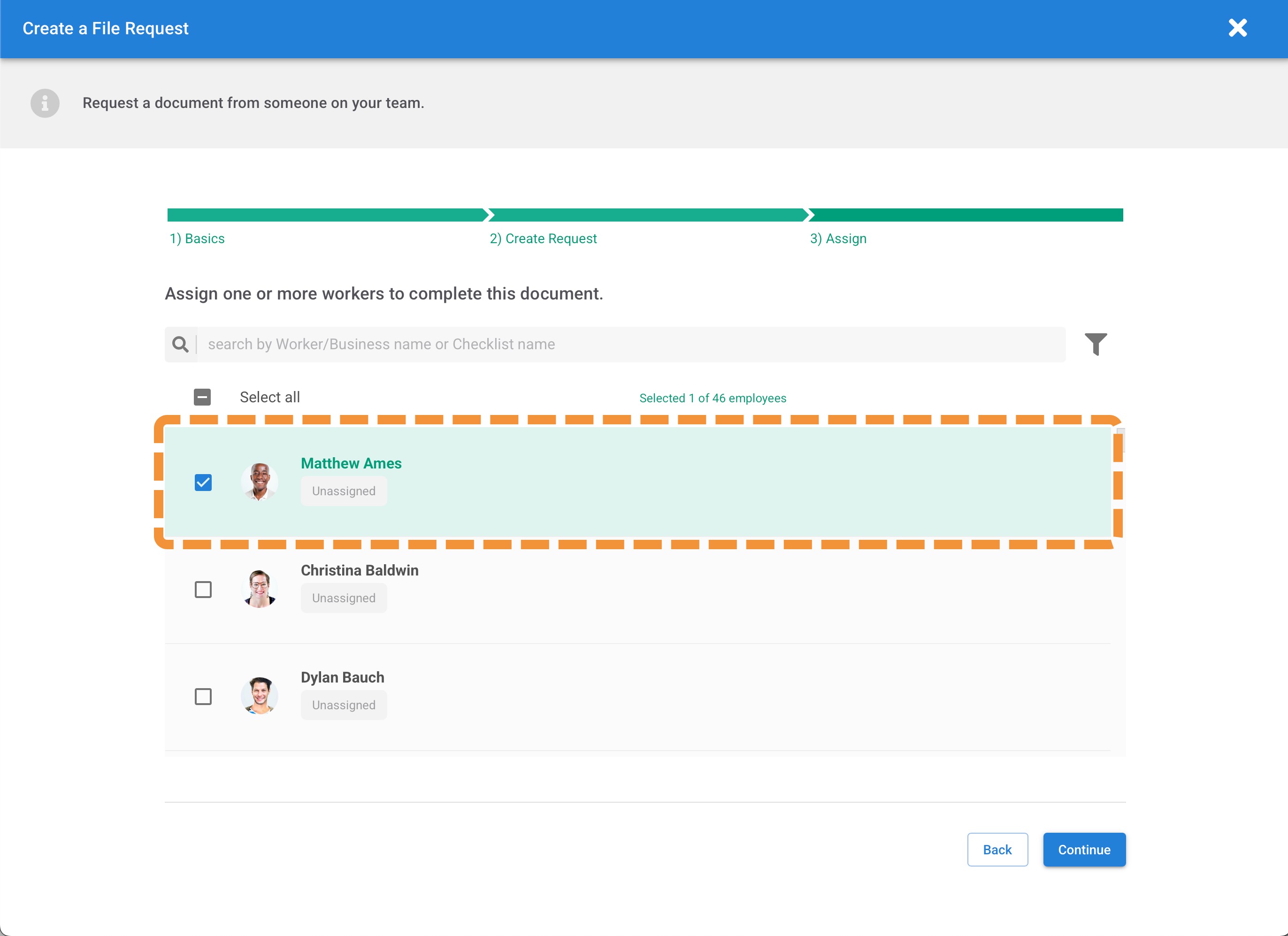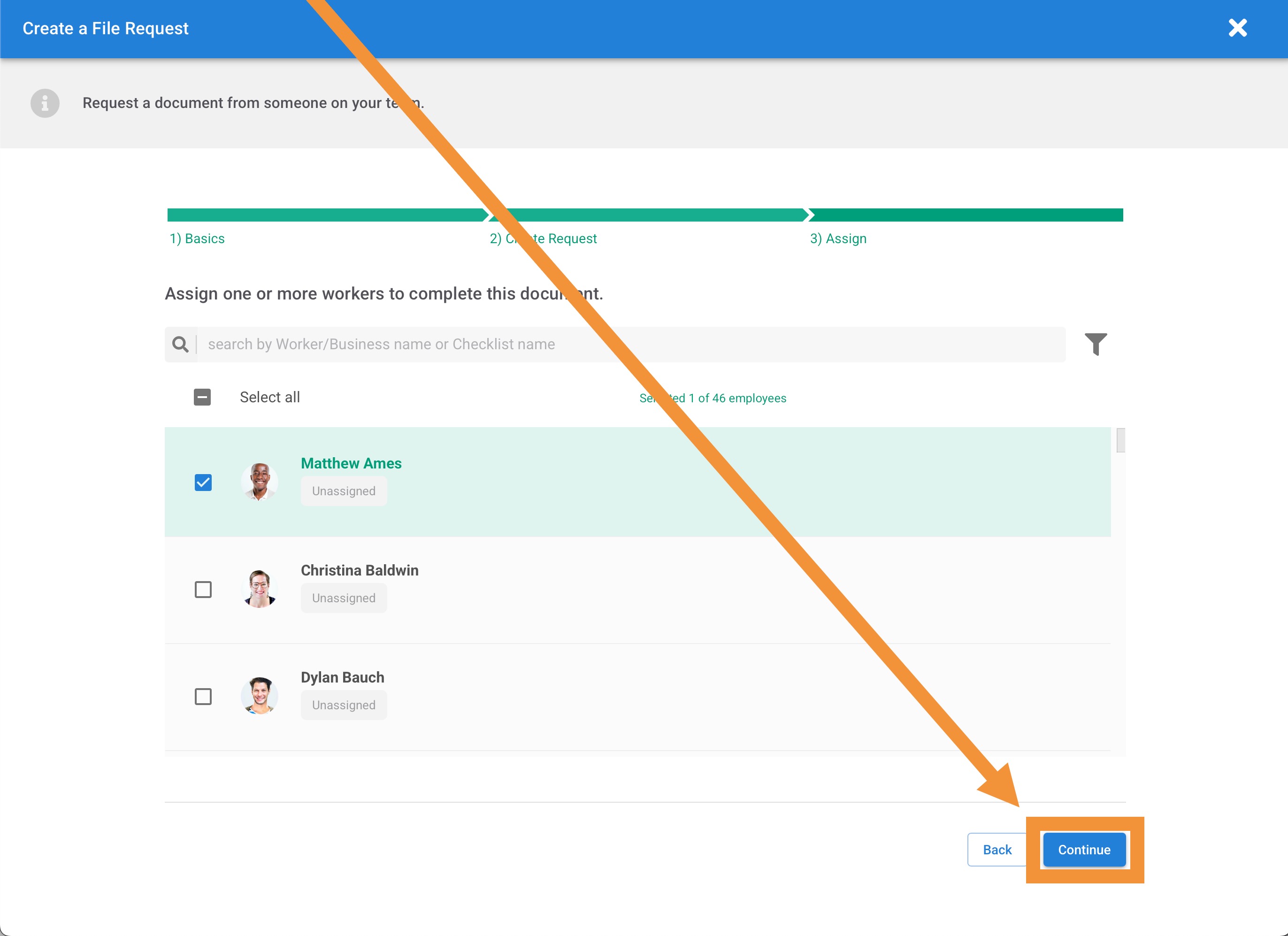 Once you've selected the employee(s) who should receive this request, click Continue.