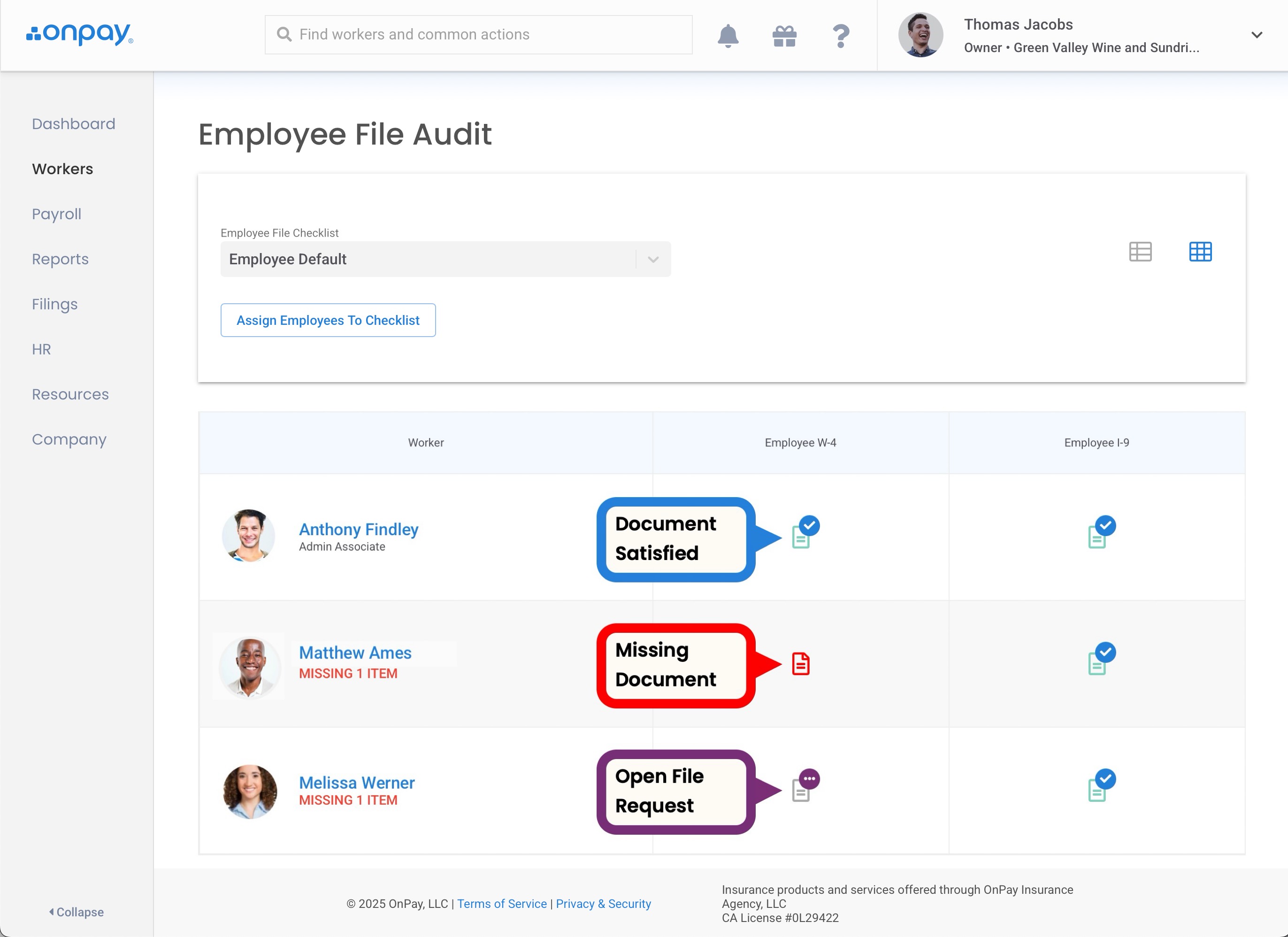 - File Audit - Track the status of W-4 and I-9 File Requests.