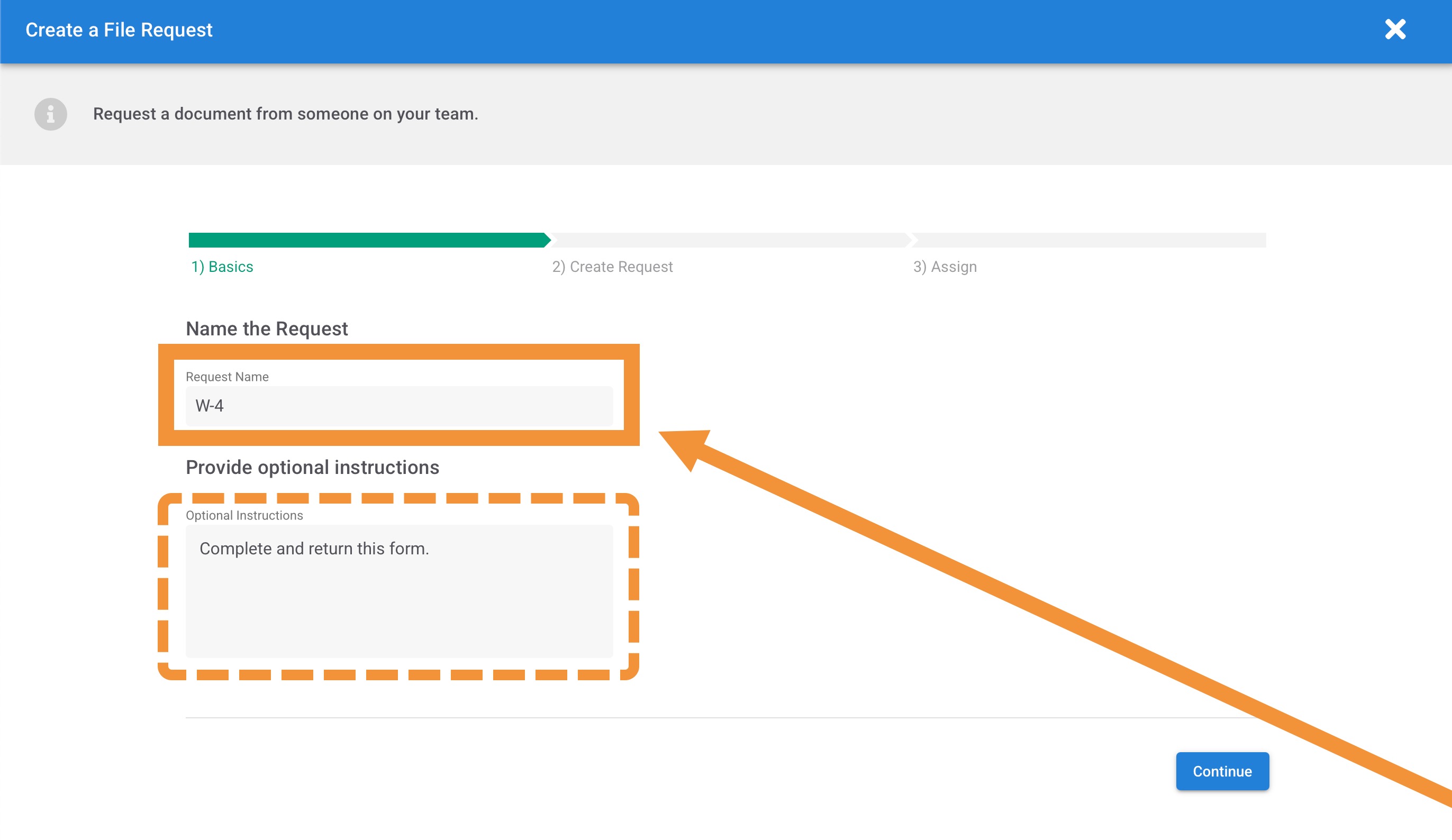 Give the request a name you can recognize right away. Keep in mind, this File Request will be used again and again to request the same file from every new employee you onboard.