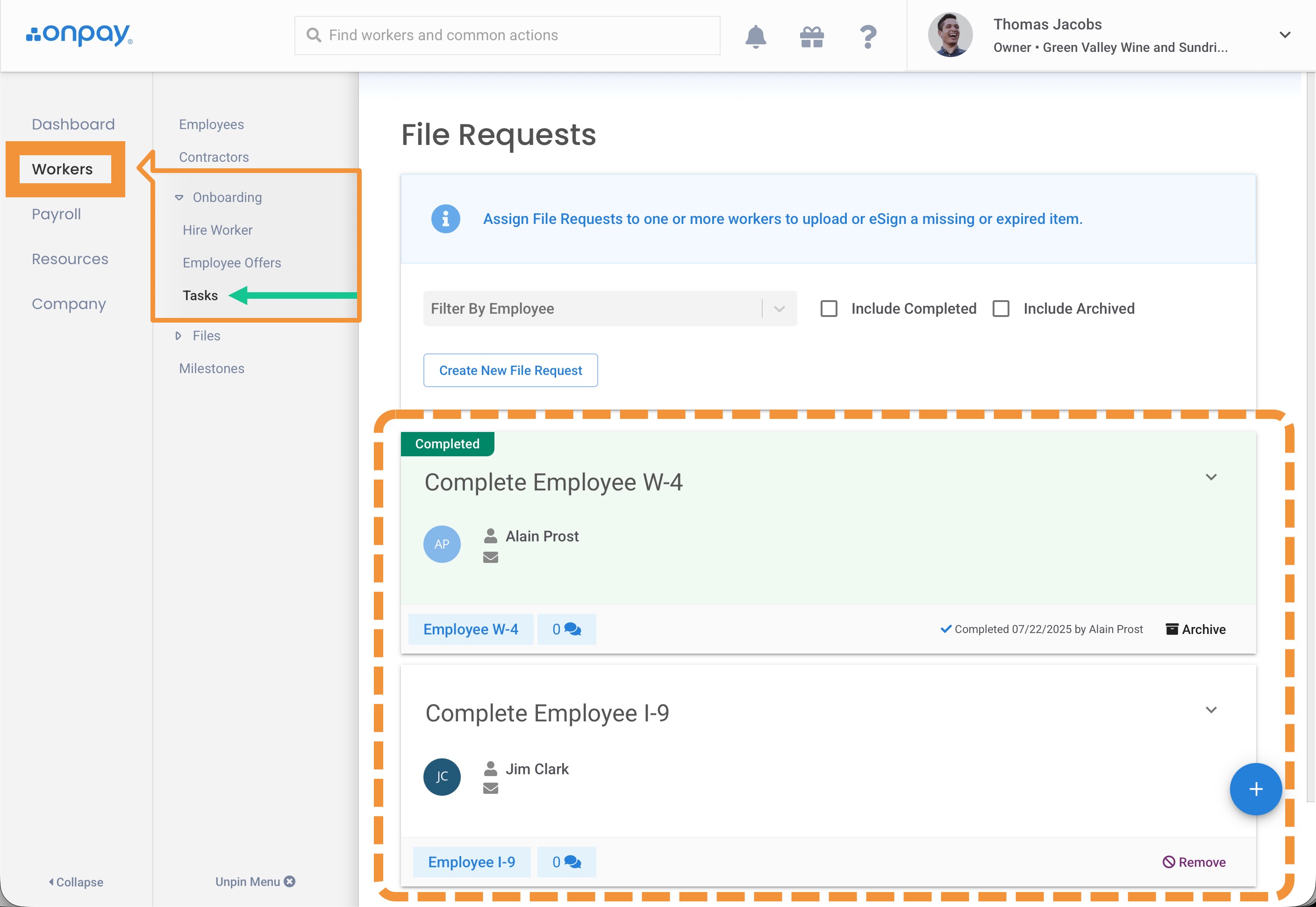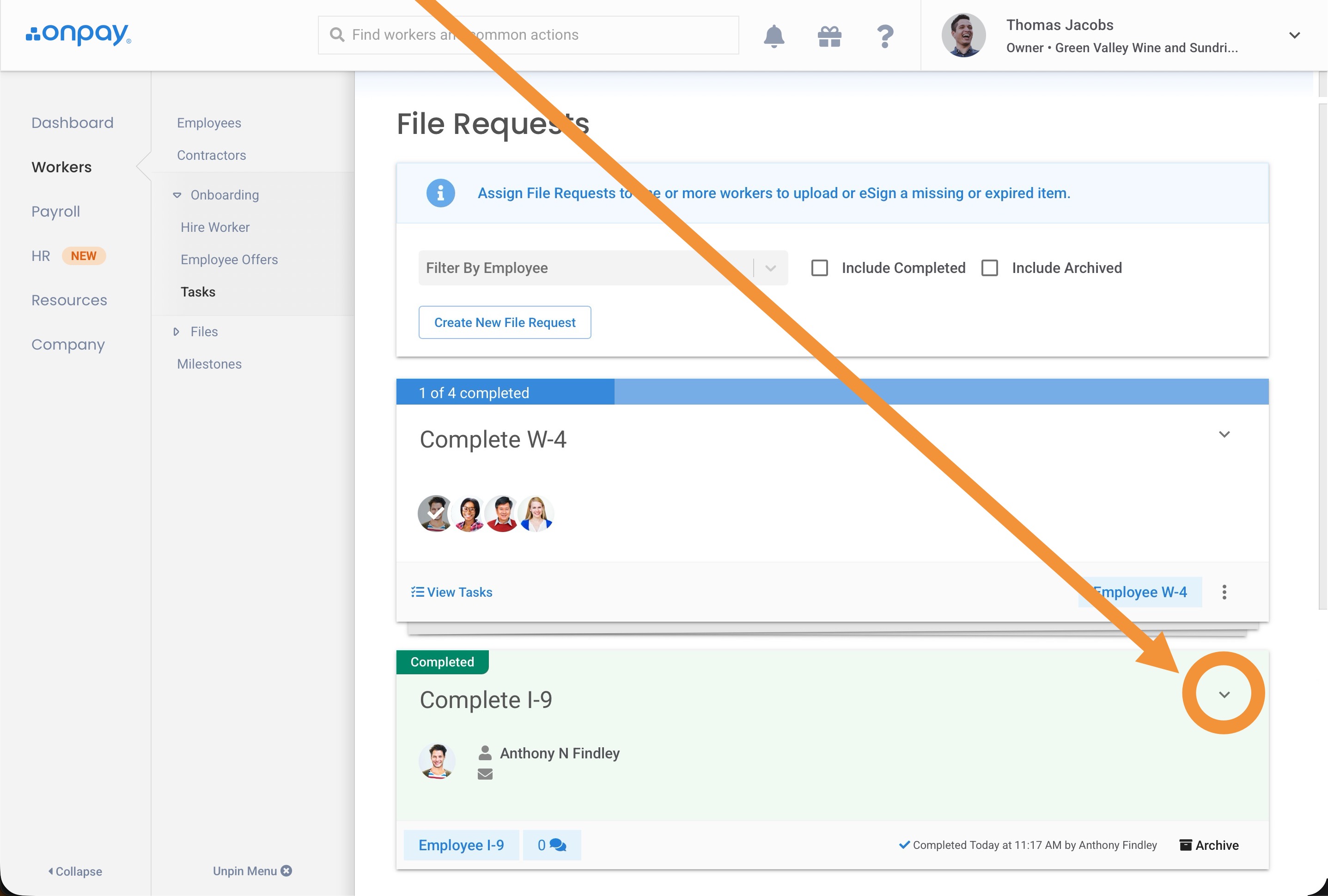 Once an offer has been accepted, the new employee will need to complete and return Forms W-4 and I-9, for you to keep on-file. You can automate this process with File Requests.