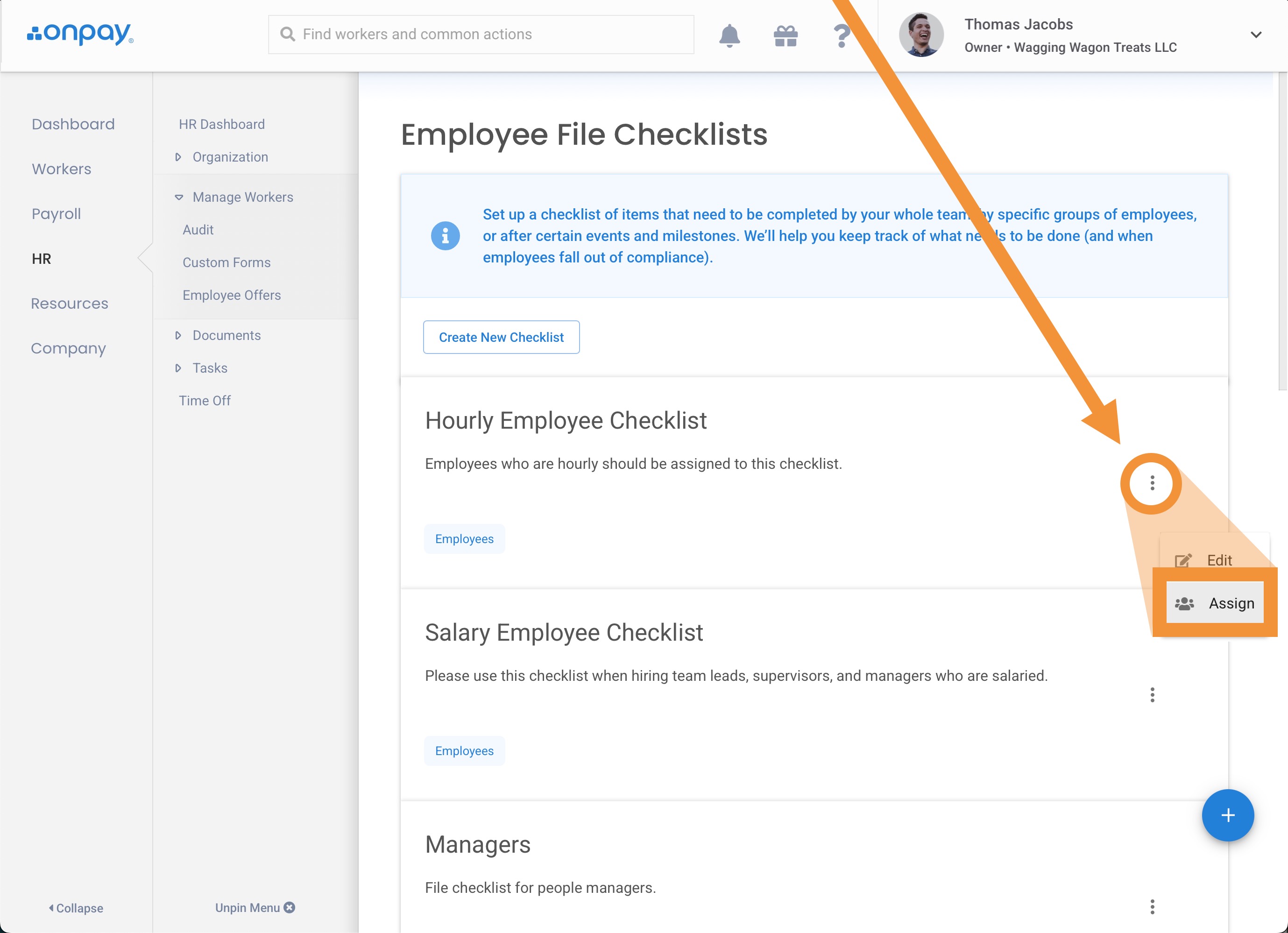 Assign checklists to employees