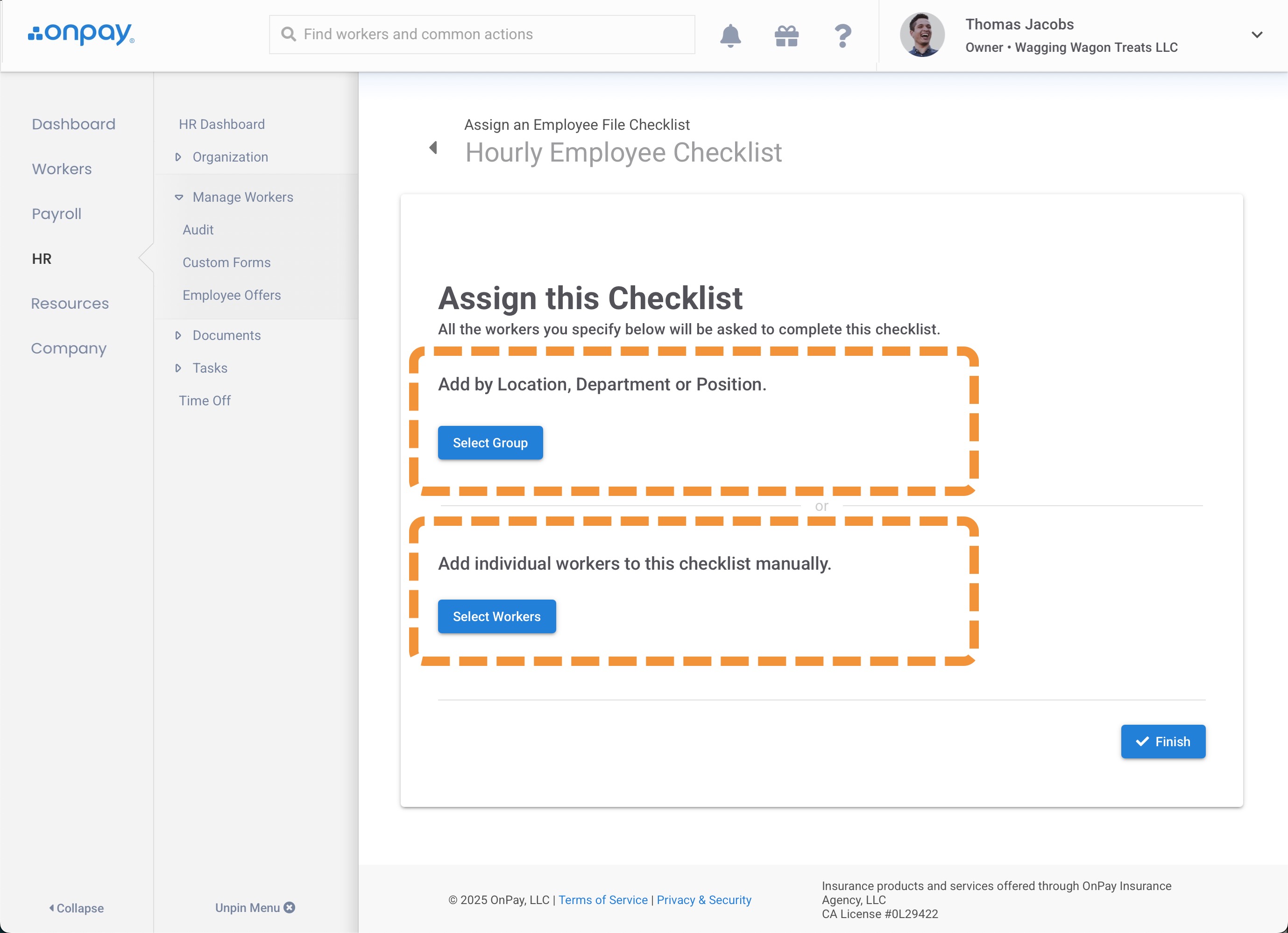 Once you've assigned employees to the checklist, click Complete.