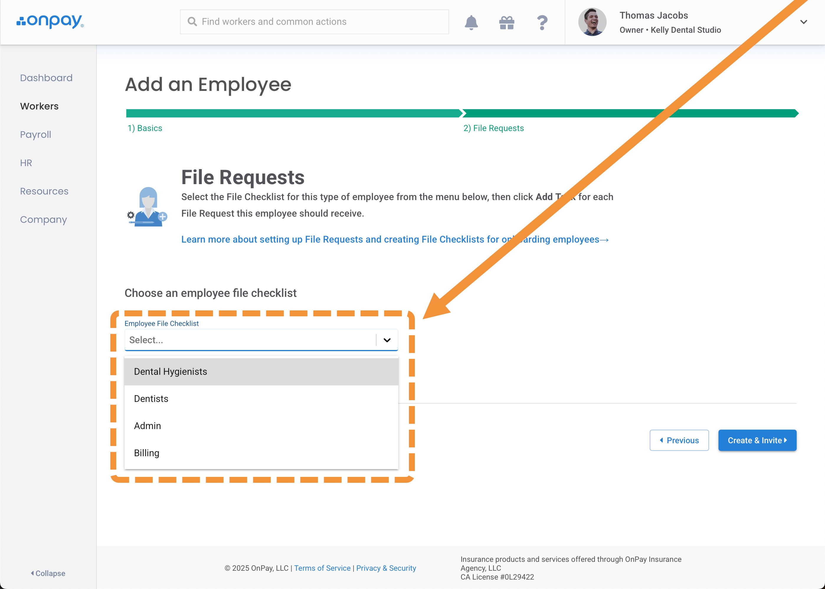 In step 2 of "Add an Employee", select the appropriate File Checklist for the employee.