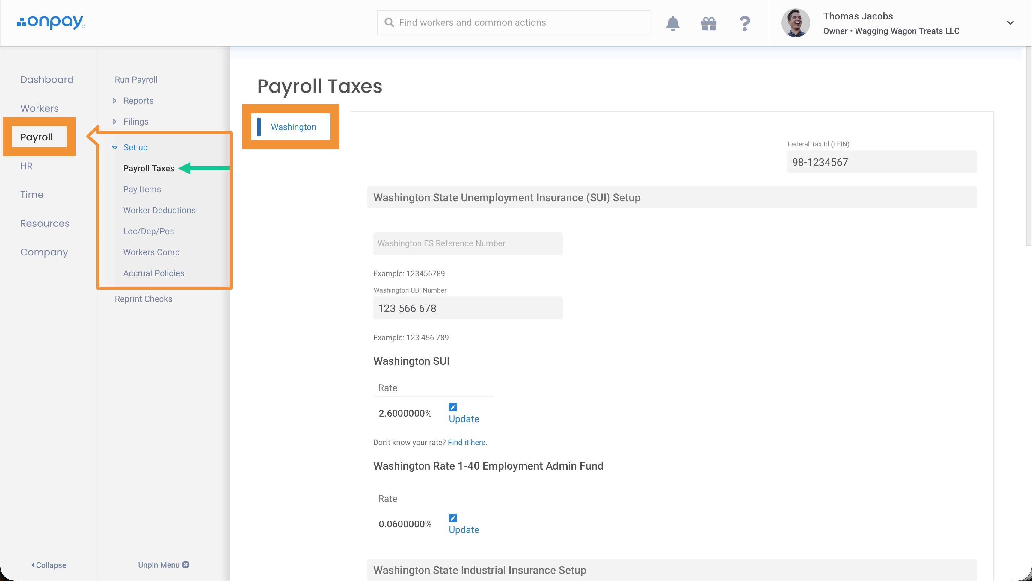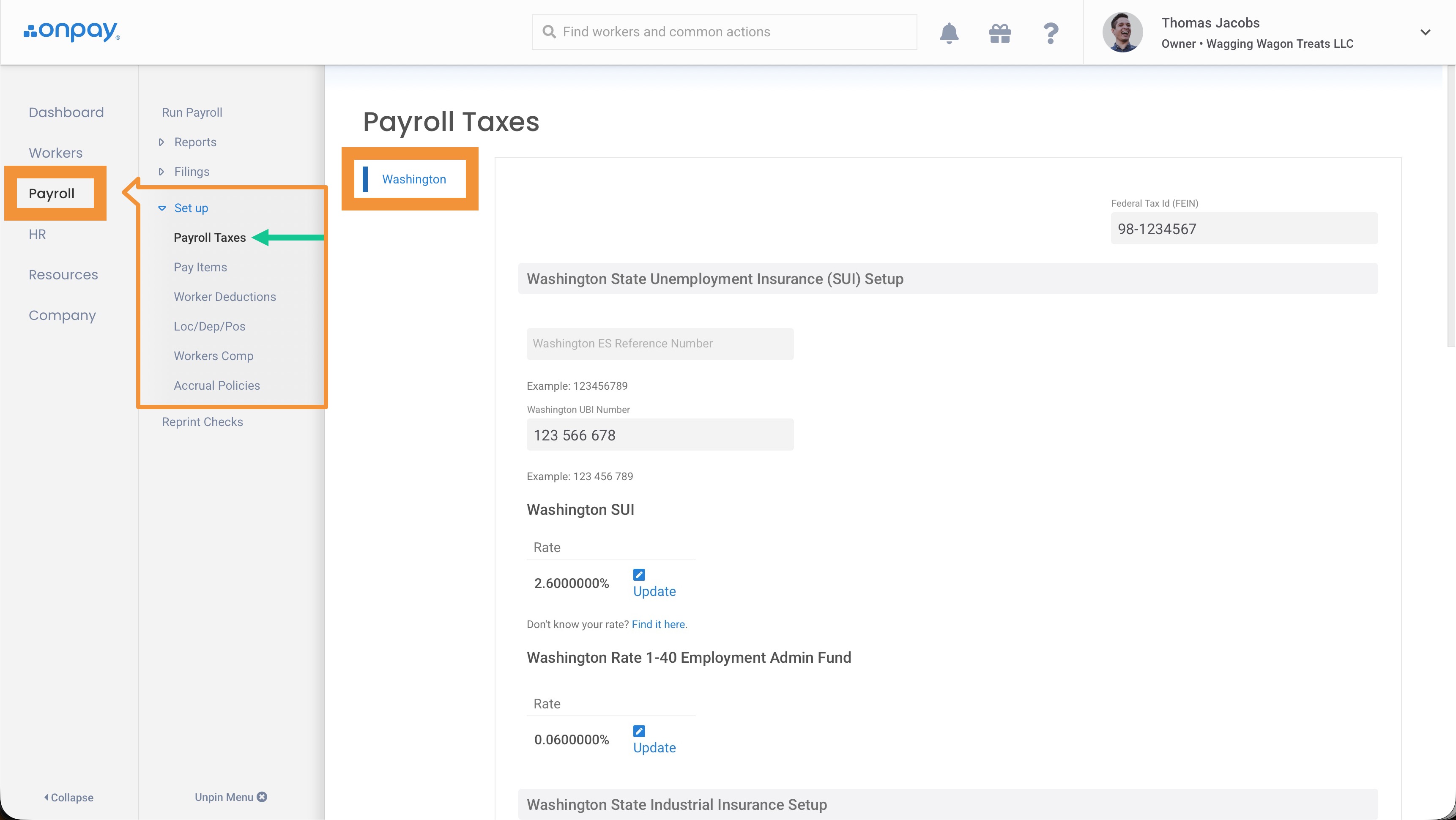 In Payroll>Set up, select Payroll Taxes. If you have employees in multiple states, make sure "Washington" is selected.