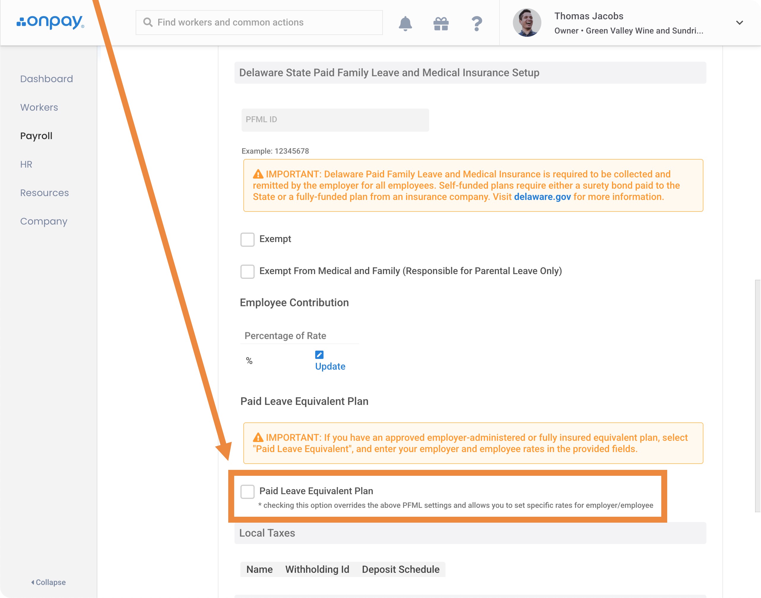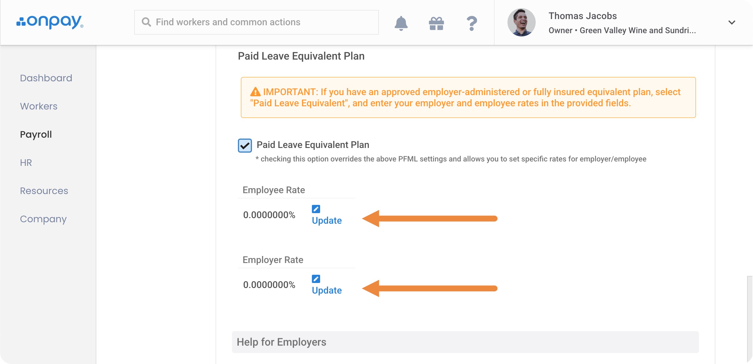 Check the box under "Paid Leave Equivalent Plan", to set employer and employee rates.